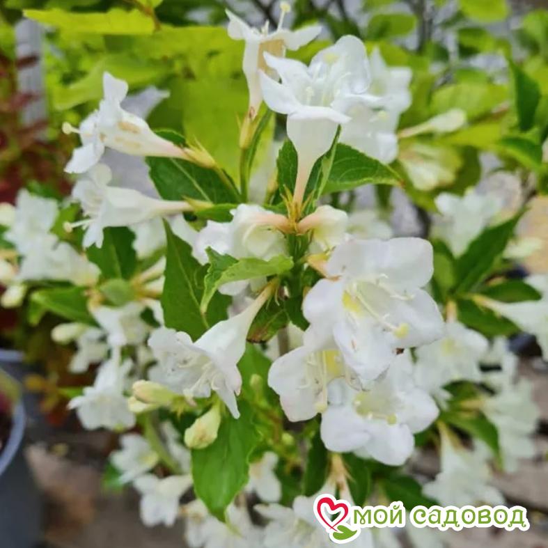 Вейгела «Бристол Сноуфлейк» — красивоцветущий кустарник, высотой и шириной до 1,5 м. Крона более вертикальная. Листья длинные, зеленые. В мае-июне куст полностью покрывается белыми крупными колокольчатыми цветками, размер которых достигает 3 см. Цветение позднее, продолжительное. В это время вейгела смотрится элегантно и одновременно трогательно. Место по возможности должно быть солнечное, защищено от ветра. Сорт склонен к повторному цветению. Уход за растением: Саженцы вейгелы нужно сажать в плодородную, воздухопроницаемую почву. Сразу учитывайте, что место постоянное, так как пересадить массивный куст с пышной кроной даже при желании будет практически невозможно. Для того, чтобы растение выглядело аккуратно, его нужно стричь, удаляя больные и поврежденные ветки и формируя крону так, как вам это нужно. В первый сезон кустарник нуждается в регулярном поливе, затем вейгелу поливают только при длительных засухах.